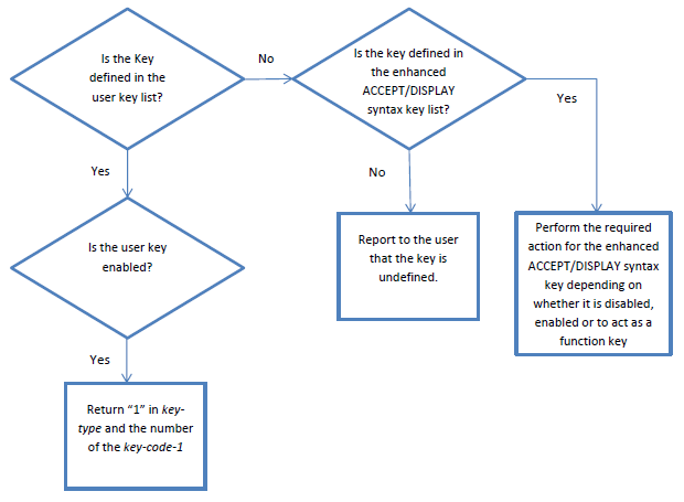 In general, a particular key is defined in either the User key list or the enhanced ACCEPT/DISPLAY syntax key list, but not both. However, there is no reason why you should not define the same key in both lists.