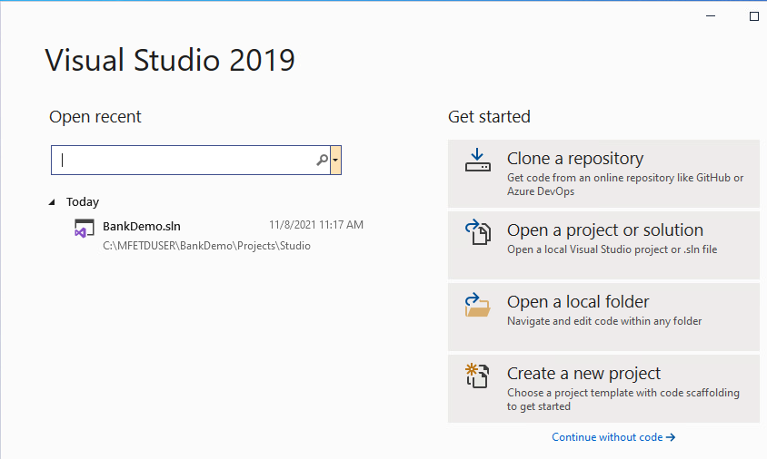• From your Windows desktop, click Start > Visual Studio 2019.